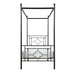 Inspired by vintage design, ball finials top the canopy frame while prominent decorative jointing and classic quatrefoil pattern lend to the modern traditional look of the Hosta Collection. The built-in platform support allows for the use of a mattress without a box spring. The Hosta collection is offered in twin and queen size bed options for versatile placement within your home. 40.5 x 78 x 77H