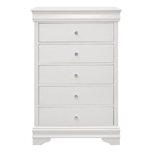 Weaver Collection by Homelegance Furniture Two Tone finish Antique white and Rosy brown color Made of acacia veneer and wood 5 dovetailed drawe...